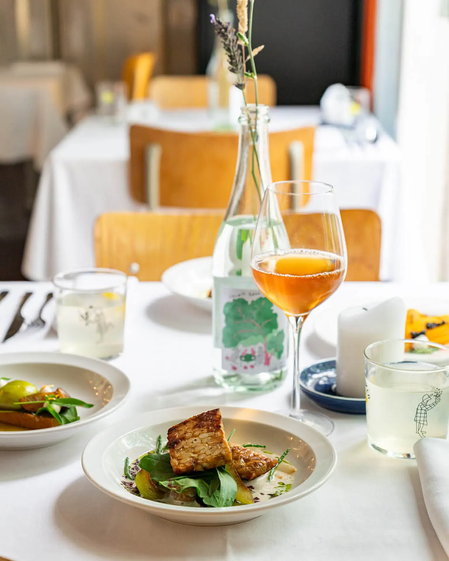 Vr - Zo; 12:30 - 14:30. Binnen en buiten plek. Een gezond landschap is het lekkerst! Een 0 km menu kaart met lokale, wild geplukte en zelf verbouwde ingrediënten. We laten je graag kennismaken met de smaken uit ons landschap. Proef de pickles uit het voedselbos, tempeh van Noord-Hollandse Krombekbonen en je landschap aan met door onszelf gemaakte dranken van Roze Bunker en Cul Sec alcoholvrije wijn. Ook hebben we op de kaart een mooi arrangement aan bevriende wijnmakers, lokaal en/of biodynamisch. Tot in ons restaurant binnen of bij mooi weer buiten in de wijntuin.