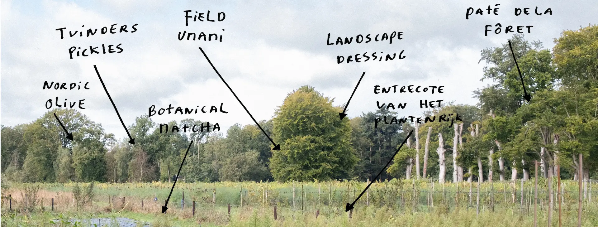 Fruitslagers verdwalen het liefst in een weelderig landschap. Door te foerageren en tegelijkertijd aan te planten, zorgen we voor meer biodiversiteit, en dus een gezonde bodem. Met PRESERVED combineren wij landschapsrestauratie met circulaire productie. Van hazelnoot resten van Veld 4 maken we een heerlijke siroop, Boonzaak-tempeh restjes worden verwerkt in een krachtige chili olie en voor onze wilde azijnen worden kruidenrijke velden aangeplant. Om maar een kleine greep uit de ontwikkelkeuken te noemen. Productontwikkeling is - net als de lijst smaken in onze weelderige natuur - eindeloos